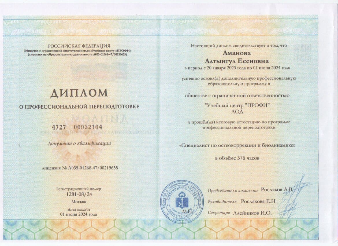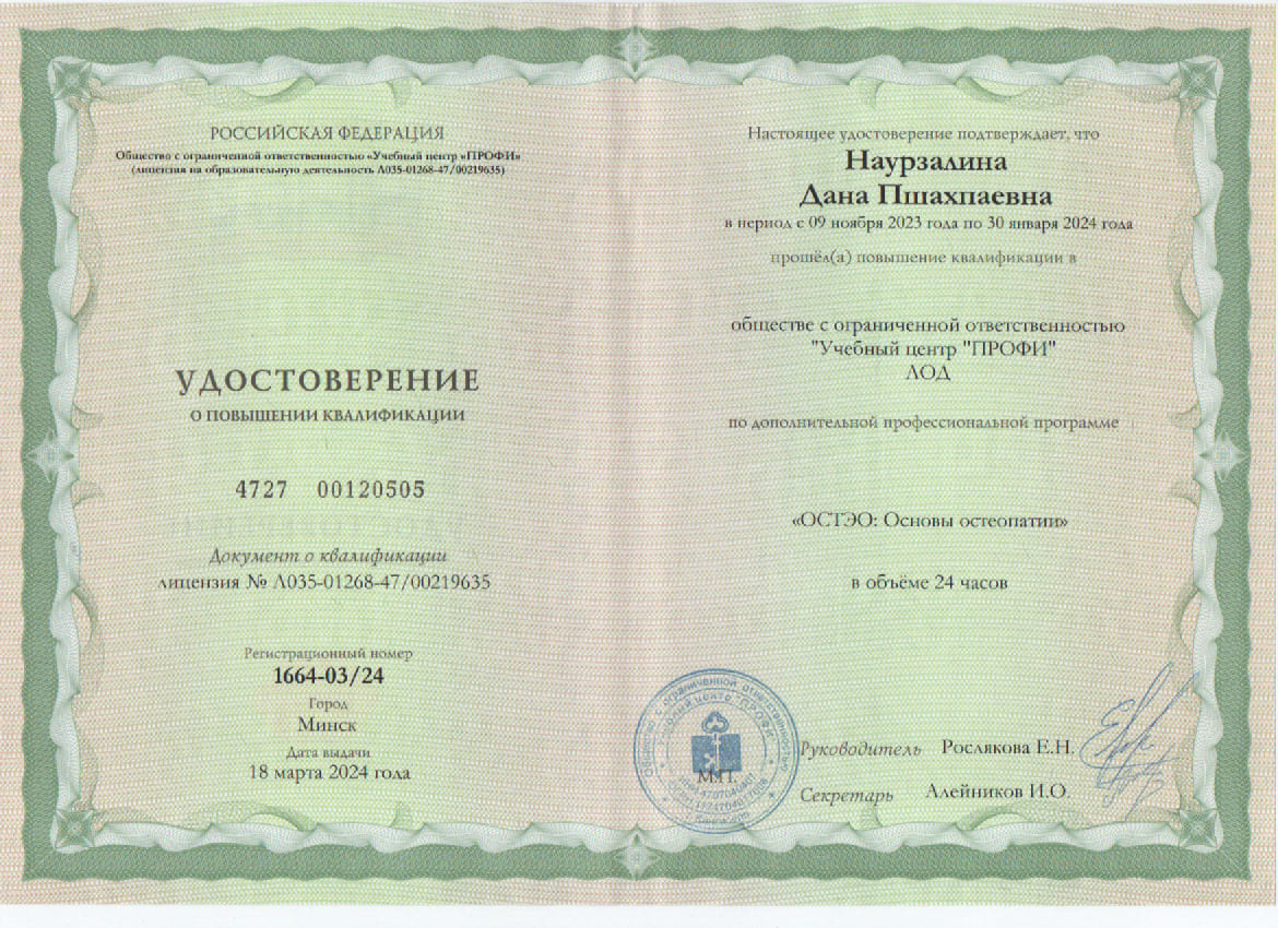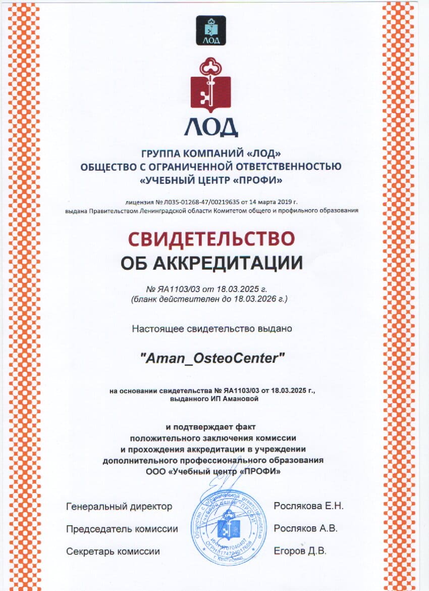Сертифицированный остеопат