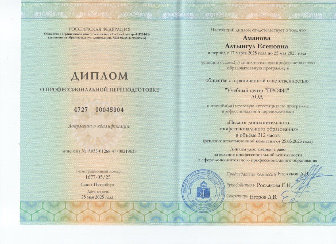 Аманова Алтынгул Есеновна