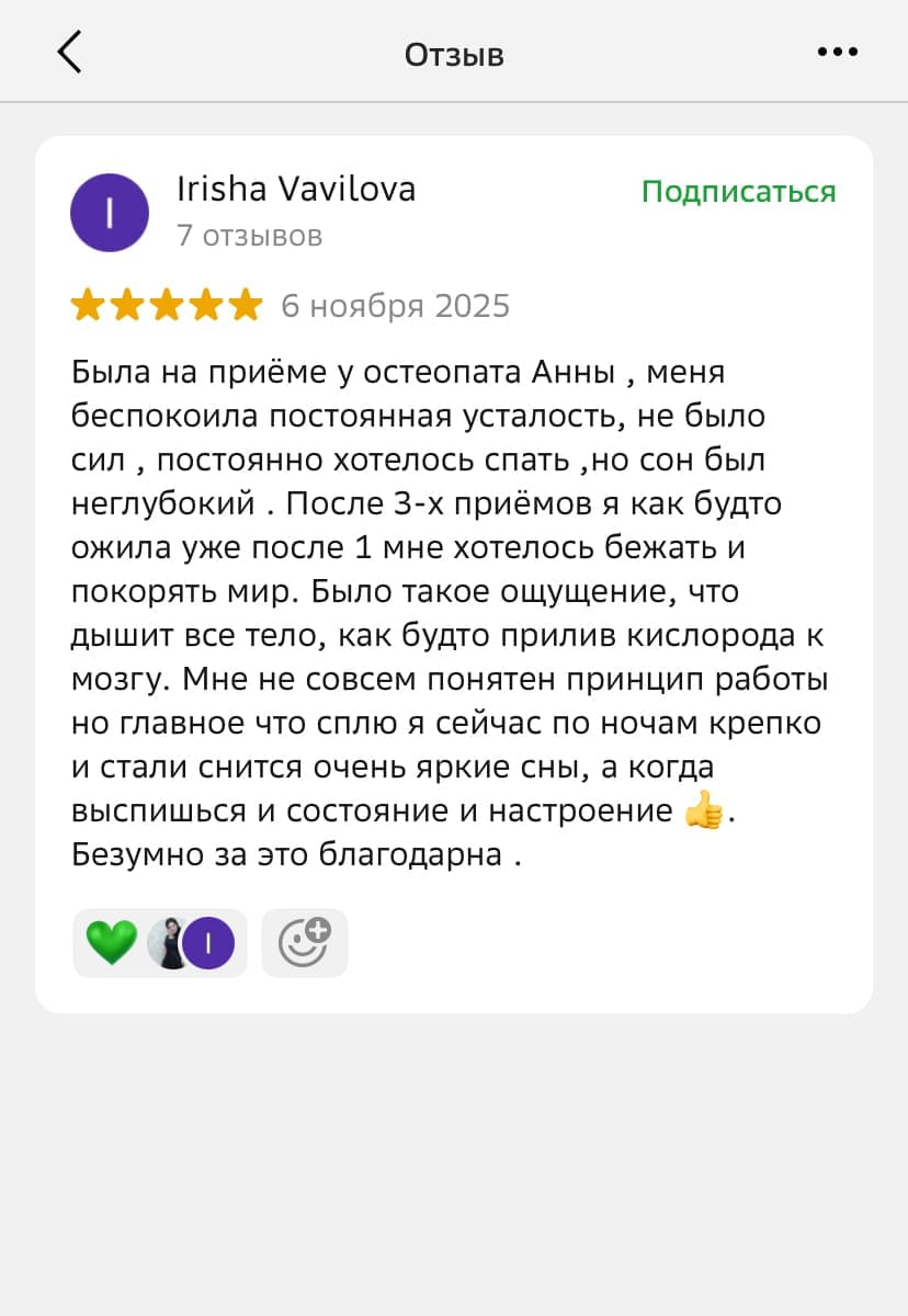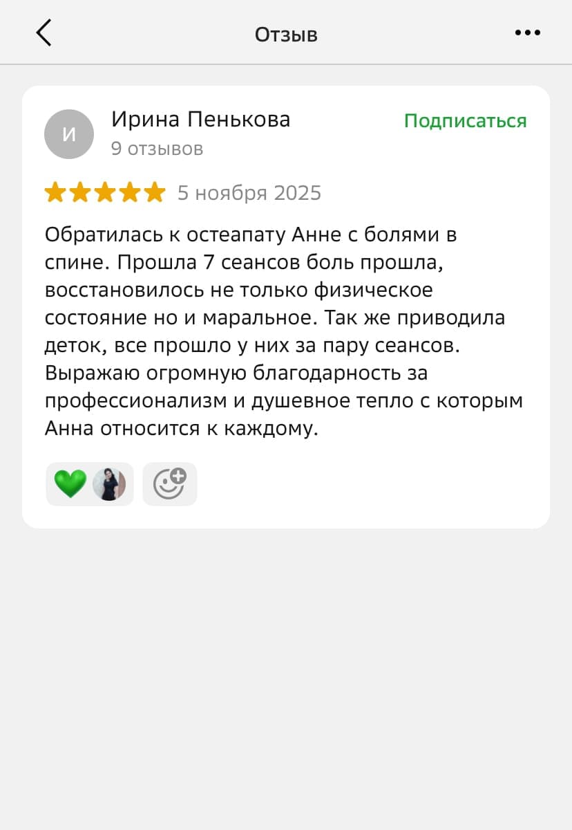 Системный психолог помогает найти глубинные причины жизненных трудностей через связь тела, эмоций и семейных сценариев. Работа проходит бережно и дополняет остеопатический подход, помогая восстановить внутренний баланс и улучшить самочувствие.
